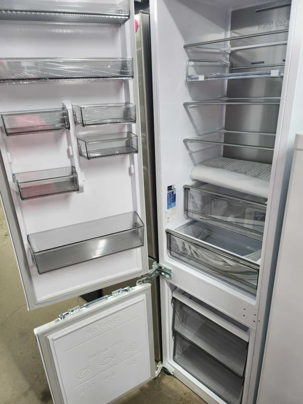 Wyposażenie 7 półek w drzwiach, 4 półki szklane, 1 szuflada z niezależną regulacją temperatury, 1 półka na butelki, pojemnik na jajka, 1 szuflada z niezależną kontrolą wilgotności
